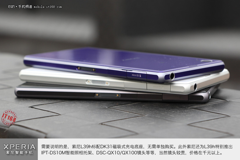 需要说明的是,索尼L39h标配DK31磁吸式充电底座,无需单独购买。此外索尼还为L39h特别推出IPT-DS10M智能照相托架、DSC-QX10/QX100镜头等等,当然镜头较贵,价格在千元以上。