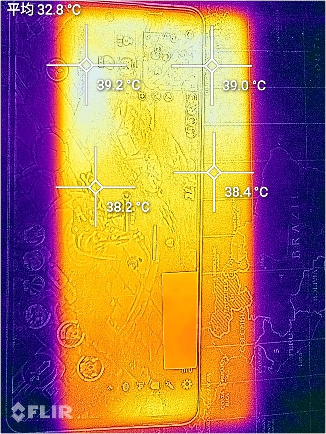 在持续游玩王者荣耀后,机身背面温度均不超过40度,在夏天中仍然有这个表现是很不错的。