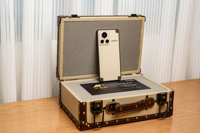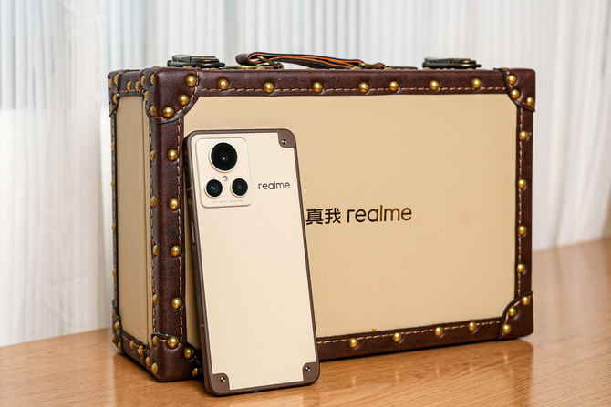 这次真我 GT2 大师探索版延续了上一代大旅行箱的设计理念,并和著名潮流设计师Jae Jung联名设计,采用了旅行复古经典的硬箱造型,方正的金属直角边框、标志的金属铆钉、硬朗的护角包边、柔软细腻的皮革后壳,无一不彰显着真我 GT2 大师探索版硬箱设计的独特辨识度,像是一个携带去户外的装备箱,一不小心就沉浸在了一场说走就走的旅行。
