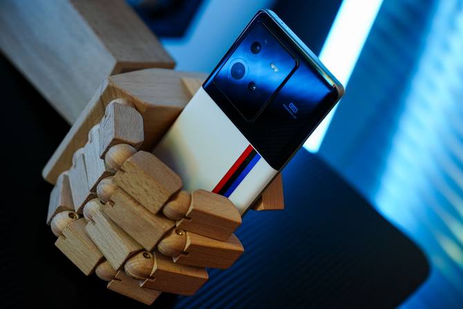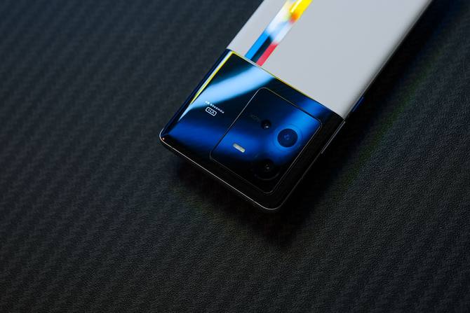 iQOO 10 Pro采用了比较少见的分段式设计,上段凯夫拉玻璃下段宝马M素皮,大约是1:2的比例。