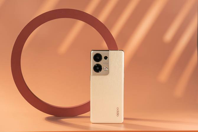 从Reno诞生开始,挑战机身工艺就是传统手艺。这次在新配色明日金上,就采用了金丝琉璃工艺。通过立体蚀刻,让机身呈现哑光质感的同时,透出如轻奢布料般闪光的观感。