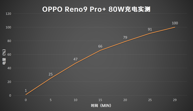 OPPO Reno9 Pro+在如此轻薄的机身里塞入了一块4700mAh的电池,配合长寿版80W快充,在保证了充电速度的同时,也有效缓解了长期用机过程中电池损耗的问题,进一步延长了手机和电池的使用寿命。充电实测,10分钟充至47%,29分钟充满。