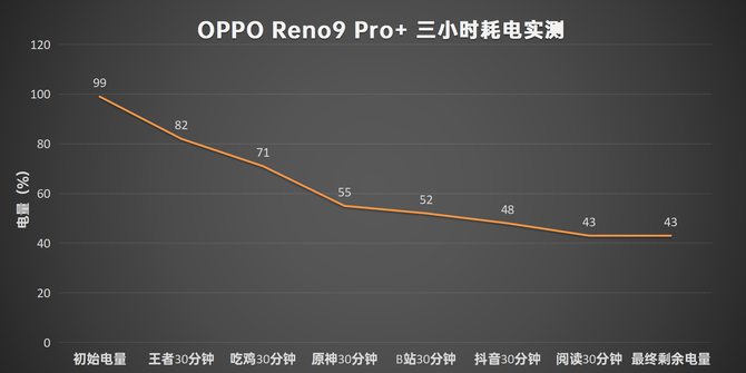 耗电方面,经过三小时的实际使用测试,OPPO Reno9 Pro+最终剩余43%的电量,对于日常使用来说,基本上也没有续航焦虑。