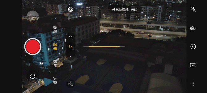 与之搭配的是OPPO自研影像专用NPU芯片——马里亚纳X。基于马里亚纳X,OPPO Reno9 Pro+将AI降噪技术应用在4K夜景视频上,清晰度进一步提升。当相机检测到环境光线不足时,取景框就会提醒打开AI视频增强模式。可以看到开启前后的区别,视频的亮度有明显的提升。