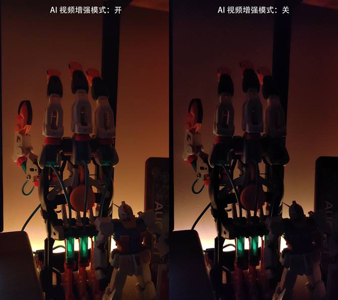 比较惊喜的是,OPPO Reno9 Pro+将原本很暗的场景拍亮之外,色彩的再生和细节表现也较为到位。而且在这个模式下,普通模式拉高iso显示的噪点,在AI视频增强下反而消除了许多,从而看到更锐利的画面。