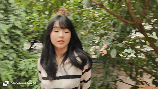 为了进一步体验实际的效果,我们和小姐姐到室外进行实拍。OPPO Reno9 Pro+这块确实做的不错,人脸部分保持了通透清晰,整个画面看上还是很干净透亮。对于经常拍视频的用户,特别是生产力需求来说,这一点就很重要了,面对更多复杂场景都可以更好驾驭。