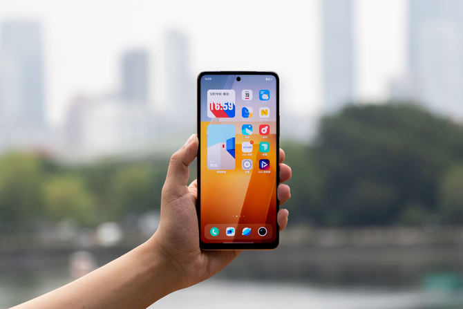 来到正面,iQOO Z7搭载了一块6.64英寸120Hz高规格LCD直屏,2388×1080分辨率,91%屏占比,支持100%P3色域,LCD屏幕也同样有着鲜艳细腻的色彩显示效果。在强光下还会自动激发HBM高亮模式,650nit的高亮度有效改善户外强光看不清屏幕的问题。