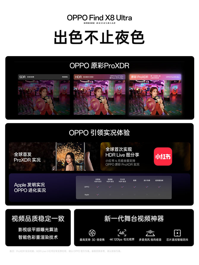 对于Find X8 Ultra的这块屏幕,可以说是配置堆满了,不仅支持2K超高清画质,还有原彩ProXDR超通透色彩显示,一眼沉浸赏心悦目。而超高屏幕亮度可以让手机在烈日之下依然清晰可见。OPPO通过AI场景检测,匹配出了最佳显示效果,让屏幕内容在户外强光下依然清晰、真实、通透、细腻。自研的熄灯护眼技术方案,让屏幕在暗光下也能拥有柔和舒适的观感。