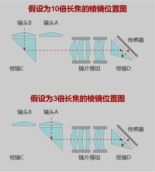 华为的解决方案大胆到令人惊叹:单摄像头模组内,精密排布两枚独立光学镜片。通过分光棱镜的精密光路设计,双路光线被完美导向同一块超大底传感器(据传为1/1.3英寸)。当用户切换焦段时,猜测有内部机械结构精准移动导台位置,实现多光学焦段的无缝跳转(据传应该是3x~4x与10x这两个常见的长焦焦段)。