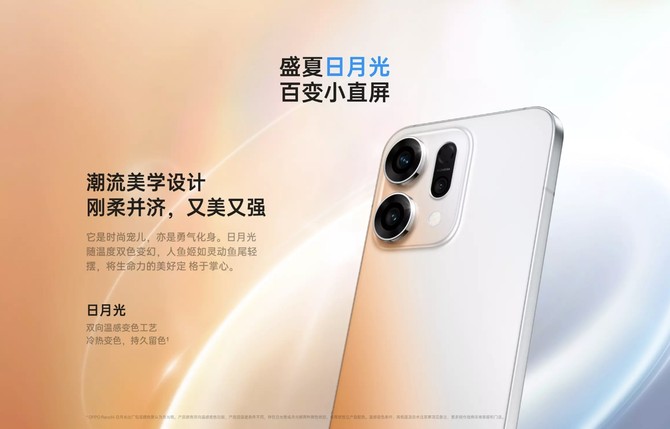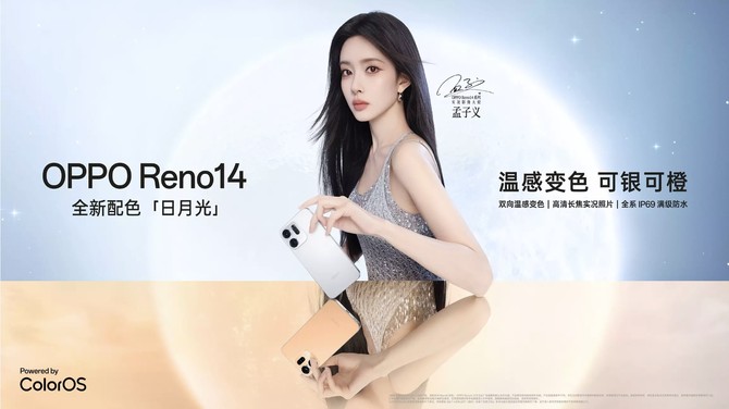OPPO Reno14 「日月光」版最引人注目的莫过于其双向温感变色功能。该机可在不同温度条件下,呈现出日光橙或月光银两种颜色状态,这一巧妙设计为手机增添了更多趣味性和个性化。同时,孟子义签名镌刻的上线,也让这款手机更具收藏价值。