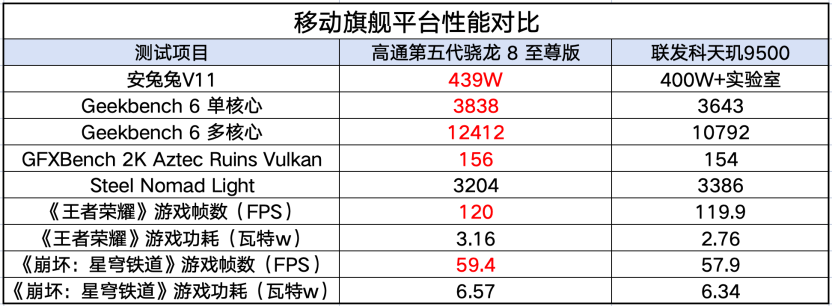 高通第五代骁龙8至尊版测试下来,就是现阶段毫无疑问的性能王者,主流的测试和游戏表现相对于上代提升明显,并且对比同代竞品联发科天玑9500,也是大幅度领先。