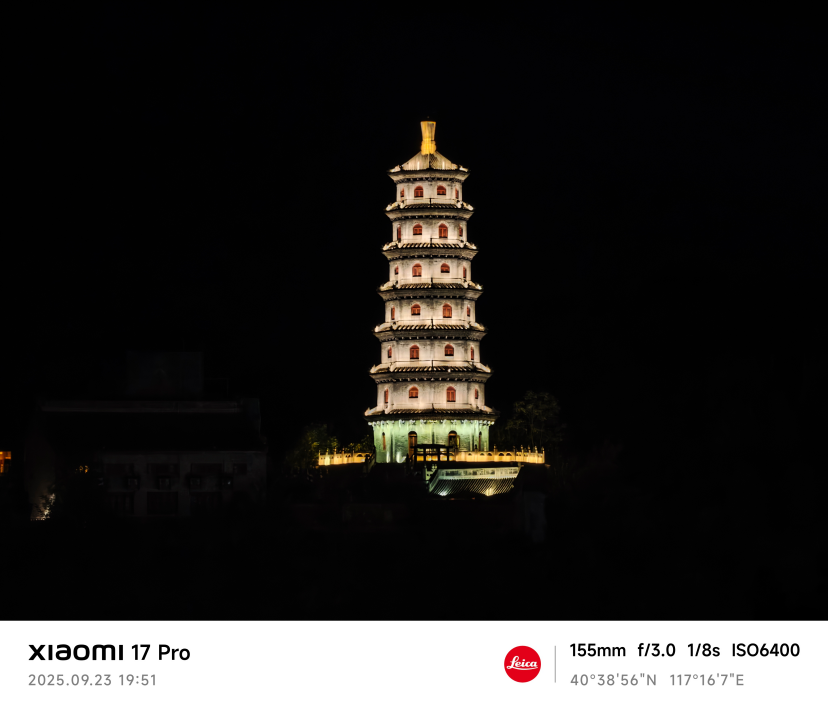 在这种明暗对比极为强烈的夜景中,小米17 Pro的实力非常出色,通过上面的样张可以看到,各类光影的对比非常协调,基本上能够很好地还原我们肉眼所看到的效果,成像效果优秀。
