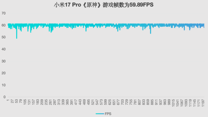 《原神》60FPS特效拉满的情况下,实际的游戏帧数为59.89FPS,平均帧数非常稳定,整个游戏没有任何的波动,实际性能表现优秀。