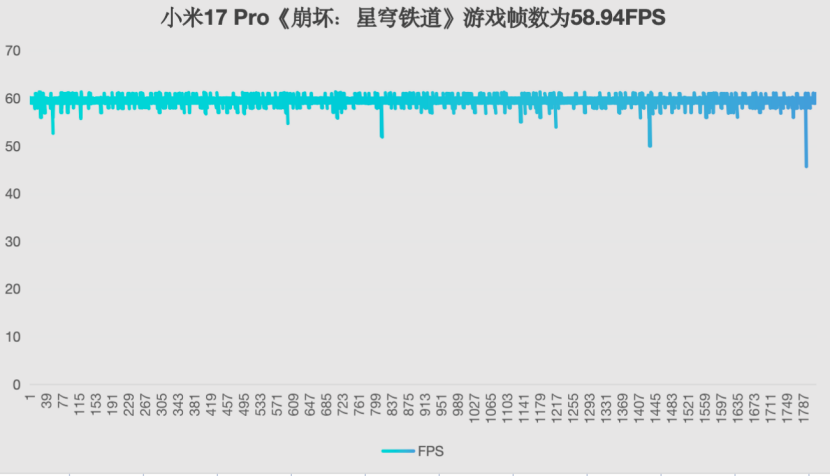 上点强度的《星铁》,经过测试,跑图的游戏帧数来到了58.94FPS,全程帧数稳定,没有太大的波动,这时候的平均功耗为6.3W。