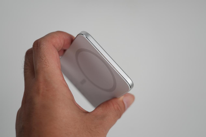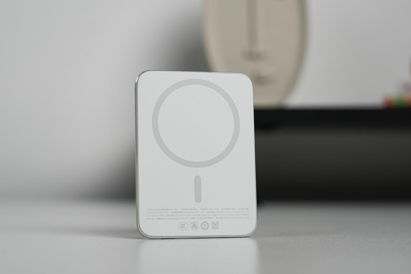 比如这次,我们还拿到了小米全新设计的超薄无线充电宝,这款充电宝支持磁吸,配合上小米金沙江电池技术,即便如此轻薄,也能提供5000mAh的电量,当然这款充电宝同样支持iPhone。