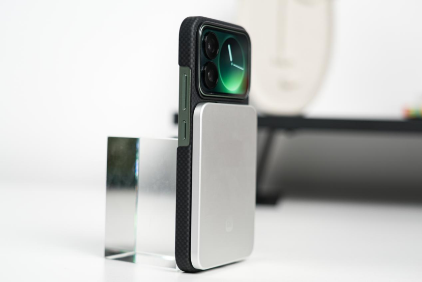 这次在配件方面,小米17 Pro系列还为用户提供了龙鳞纤维磁吸保护壳,这款保护壳非常轻薄,基本和碳纤的材质非常像,装上之后接近于裸机的手感,对于追求质感的同学来讲,选择这款手机壳非常不错,并且磁吸的设计,也衍生了额外的配件,比如磁吸散热器、充电宝、无线充电器等等。