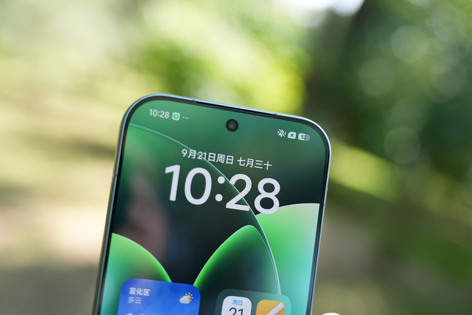 可以看到整个屏幕基本实现了上下等边框的设计,带来更强的视觉冲击力,并且经过精心设计的大R角,在我们握持手机的时候,并不会有硌手的感觉,并且标志性的整块龙晶玻璃覆盖,也带来更强的抗冲击能力和防刮花表现。