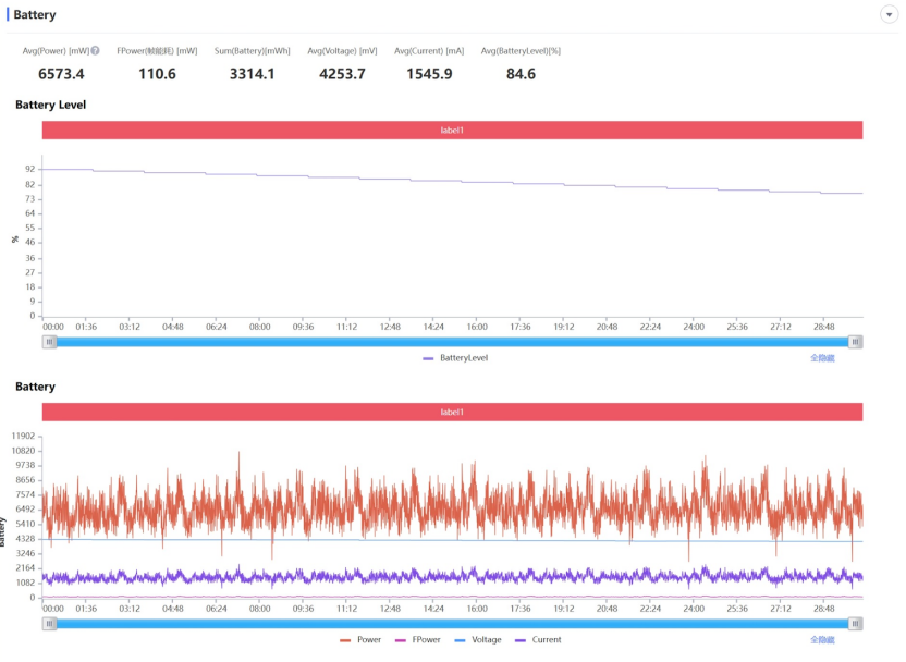 并且在除了亮度够高之外,还有更为出色的能耗表现,全亮度的曲线,使得每个节点功耗都比iPhone更低。