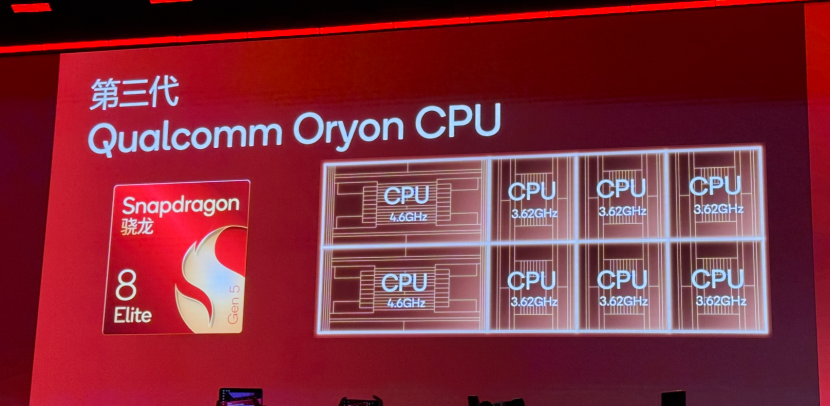 全新的高通骁龙8至尊版搭配了高通最新的第三代Qualcomm Oryno CPU,架构则是和上代一样,2个超大核+6个大核的设计,并且两个超大核的主频来到了4.6GHz,性能核频率为3.62GHz。