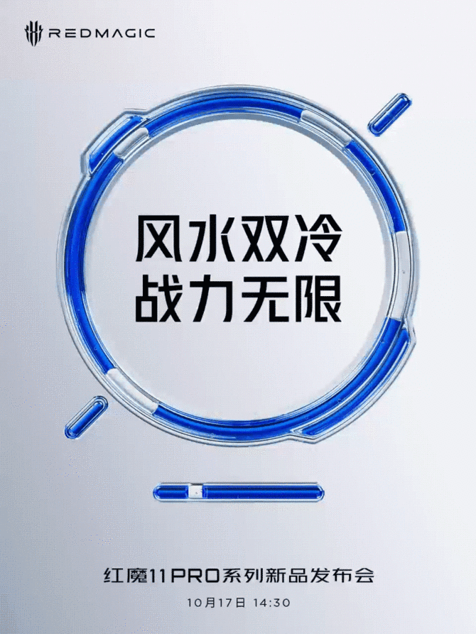 10 月 9 日,红魔官方发布 “风生水起” 主题海报,宣布将于 10 月 11 日举行 “水冷暨游戏技术发布会”,随后将于 10 月 17 日正式推出红魔 11 Pro 系列。对于品牌成立七周年这一重要节点而言,“风生水起” 这一主题不仅代表红魔新产品的到来,更预示着手机散热技术即将迎来 “风水双冷” 时代的革新。