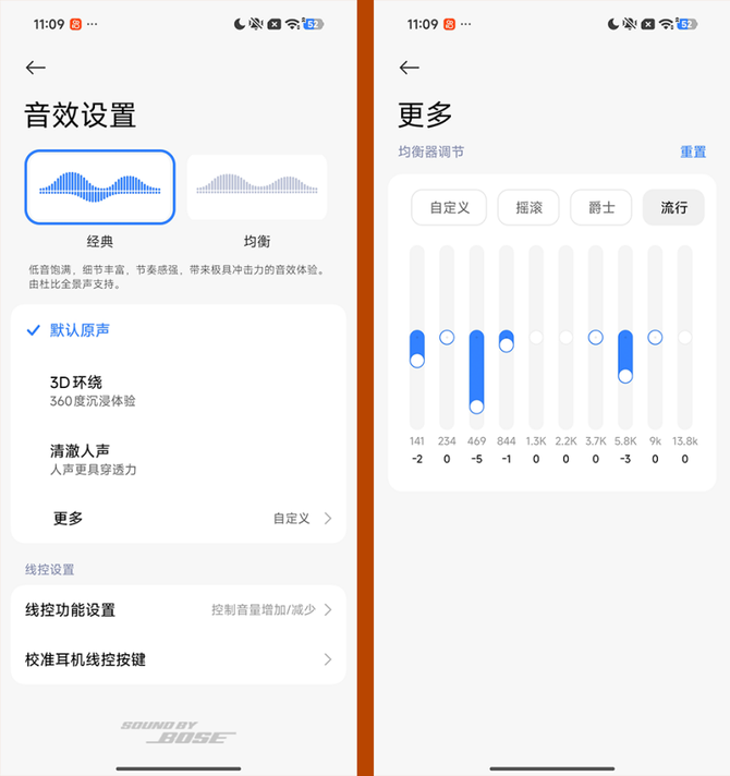 当然在「设置」内,我们还能够进行声音的场景设置,K90 Pro Max联合Bose提供了多款音效可供大家选择,并且用户还能够根据自己的喜好,自定义EQ音效曲线,满足用户的个性化音频需求。