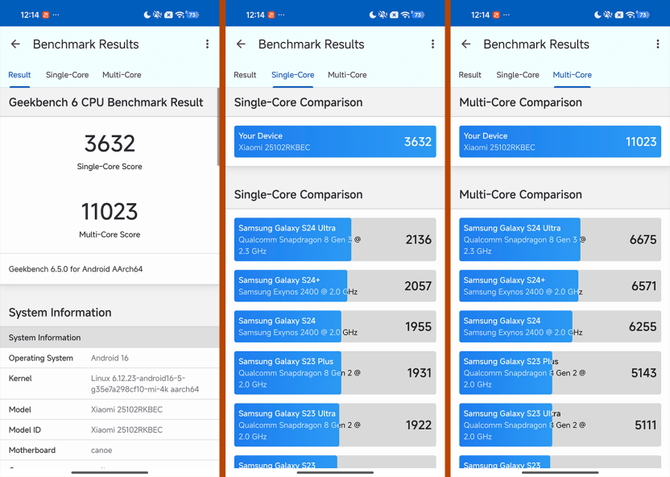 GeekBench 6测试中,REDMI K90 Pro Max的单核心性能为3632,多核心为11023。