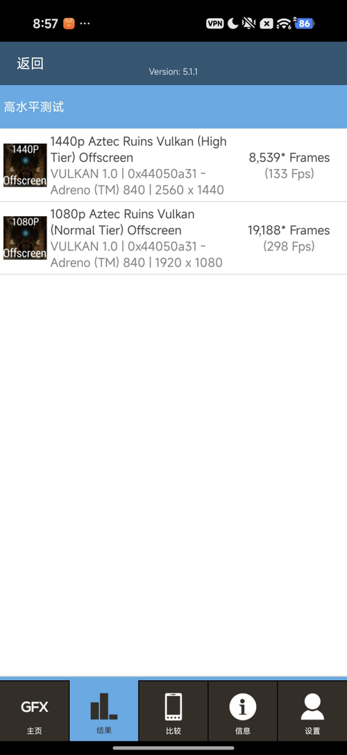 GFXBench测试中,2K和1080P的分辨率下,帧数分别为133FPS和298FPS,图形渲染表现很好,轻松应对绝大部分的游戏性能。