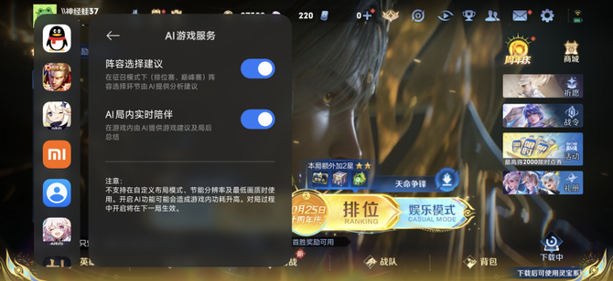 游戏方面,这次REDMI K90 Pro Max还拥有独立的硬件AI模块,可以通过AI技术实现更好的游戏体验,包括出装建议、语音助手等,对于新手用户非常友好,游戏水平能够实现快速提升,降低游戏学习成本。