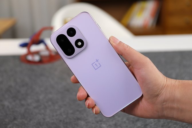 更难得的是,这份设计感还兼顾到了实用性。背板延续了一加标志性的 AG 雾面处理工艺,手指划过触感清爽不滑腻,即便在夏日手心微微出汗,也能稳稳握住;同时,雾面材质对指纹和油污的抑制效果堪称出色,日常使用后轻轻一擦就能恢复洁净,既守住了个性颜值,又省去了频繁擦拭的麻烦,真正做到了“好看又好用”。