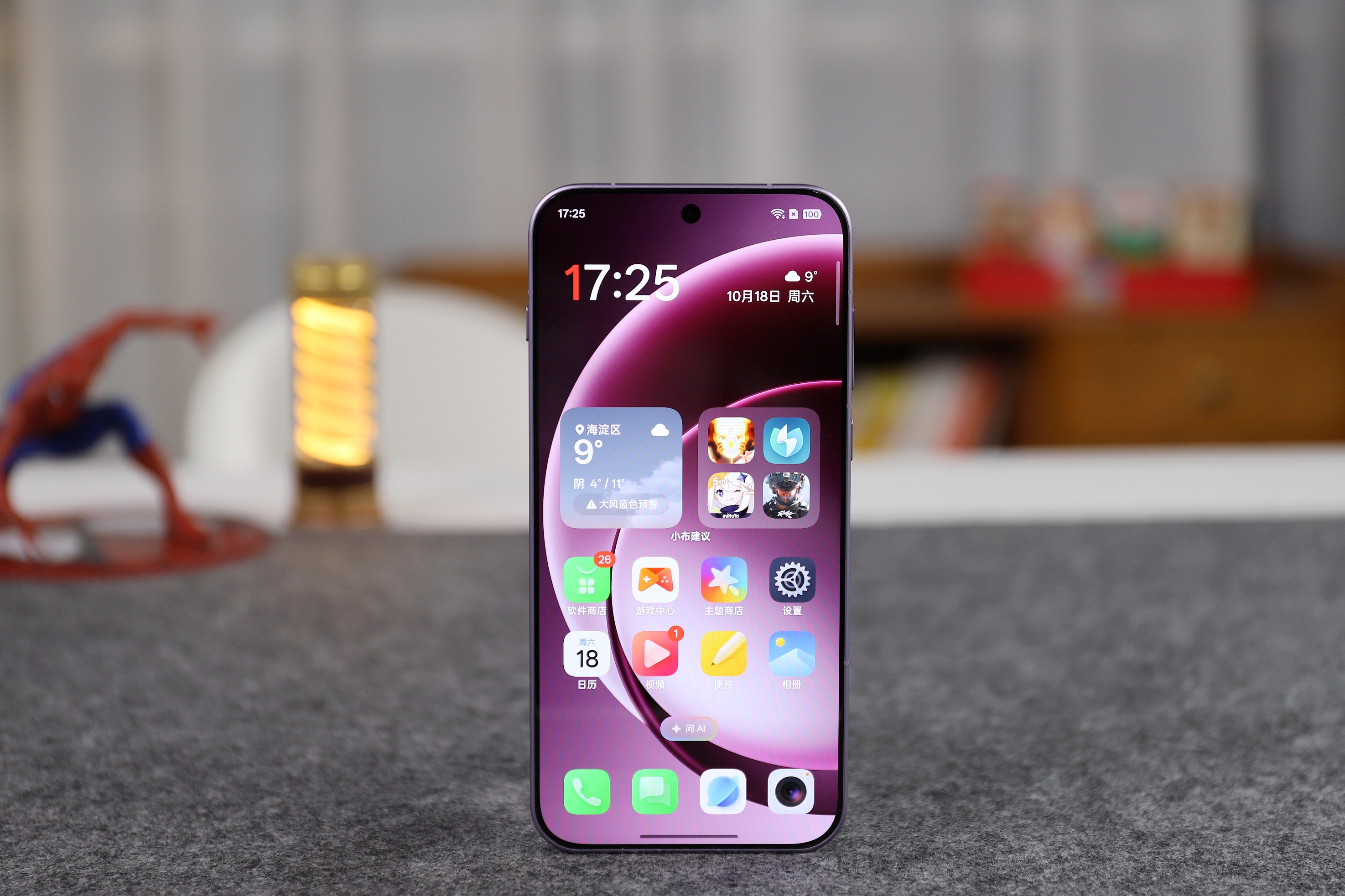 最令人惊喜的还是握持手感的突破,金属中框不仅硬度强,而且微弧边框与黄金 R 角的衔接堪称完美,复刻出鹅卵石般的“无感握持曲线”。215 克的重量搭配“冰皮手感”涂层,单手久握不粘腻,长时间握持毫无压力。