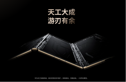 华为能在折叠屏领域占据如此主导地位,这离不开华为在折叠屏领域深厚的技术积累。铰链是折叠屏最重要的技术之一,而华为拥有自研的双旋水滴铰链、天工铰链技术。