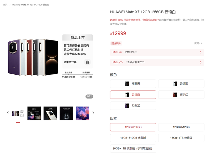 2025 年 12 月 5 日 10:08,华为年度旗舰折叠屏手机 Mate X7 正式迎来全渠道开售,官方定价 12999 元起,凭借全新玄武架构、第二代红枫影像系统以及鸿蒙生态专属权益,为高端折叠屏市场带来重磅升级。无论是非遗工艺与现代科技的融合设计,还是比肩直板旗舰的影像表现,都让这款新品成为年末最受关注的高端机型之一。