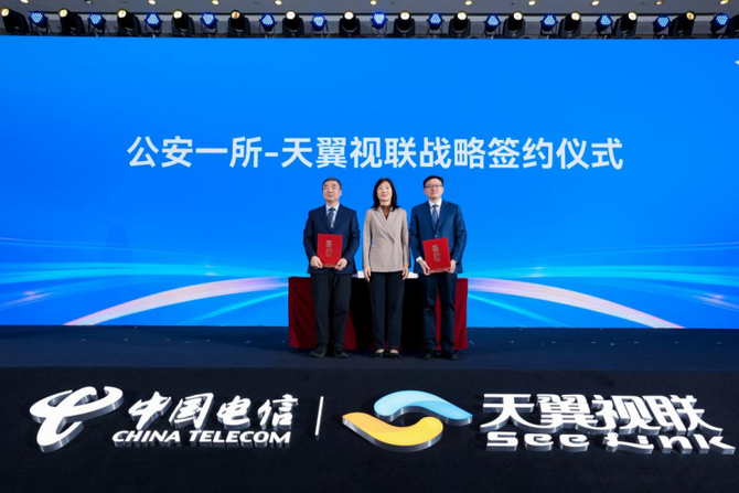 论坛上,公安部第 一研究所与天翼视联公司进行战略签约,双方将聚焦视频安全领域持续创新,共同构筑坚实可靠的视频安全屏障。