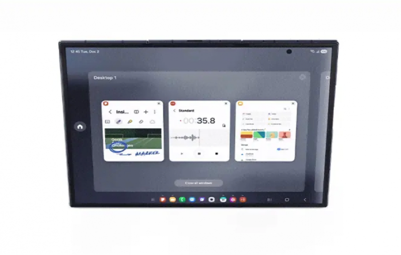 不仅如此,由于屏幕的显示空间相比普通折叠机型大得多,三星Galaxy Z TriFold能实现更自由、更便捷的多任务交互,堪比一台平板电脑。比如,用户能同时启动三个完整的应用,在互不干扰的情况下排列在屏幕之中。当需要自定义应用窗口大小时,用户也可通过多窗口视图,自由调节它们的尺寸和排列方式,用最适合自己的方式来观看和操控应用。同时,三星Galaxy Z TriFold还是首款能在本地运行Samsung DeX的Galaxy手机。这意味着即便不外接显示器,用户也能直接使用类似PC交互的DeX模式。该模式至多支持四个独立的桌面,每个桌面可同时运行五个应用程序,能极大提升处理事务的效率。当然,用户也能连接外部显示器,开启扩展模式打造双屏协同体验。