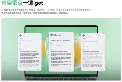 其次,华为MateBook系列的AI概要功能能提高日常的工作效率,无论是会议记录,还是课堂学习内容,AI概要都可以自动生成简洁明了的总结,帮助你迅速抓住重点,减少冗长的阅读时间。在视频会议中,华为MateBook还能通过AI字幕功能为你实时翻译外语发言,并支持字幕导出,方便进行后续的整理与分析。这一功能,尤其适合频繁参加国际会议或需要翻译资料的工作场景,让语言不再成为沟通的障碍。