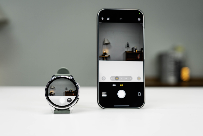 还有一个非常常用的功能,就是手表遥控手机相机的功能,可以将手表作为遥控器,在摆拍和自拍的时候,也能直接从手表上看到手机相机的取景画面,并且还能切换前后摄像头,对于一些自媒体的博主或者喜欢自拍的用户来讲,这个功能非常实用。