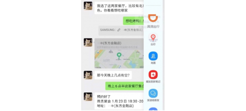 刚要开车,临时收到微信信息,会议更换到新的地址。此时,只要长按并拖动刚刚收到的地址信息,系统就会解析内容属性,弹出与之相关的地图、打车等应用,只要将地址拖动到应用图标上,即可跳转到下一步操作,“智能拖放”功能,再次为用户免除了一系列的繁琐操作。