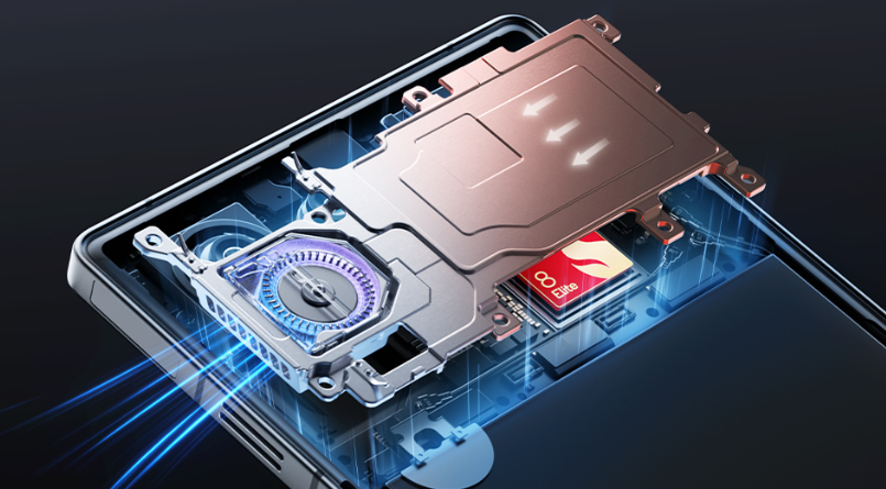 强悍的性能释放离不开极致的温控支撑。在追求轻薄与竞技感的平衡点上,红魔依然坚守着物理散热的最优解——主动散热风扇。在红魔11 Air纤薄的机身结构内,红魔工程师通过精密的排布,嵌入了一颗高转速离心风扇。