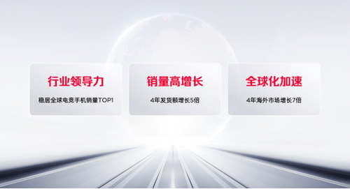 在发布会上,中兴通讯终端事业部总裁、努比亚技术有限公司总裁倪飞表示,红魔已稳居全球游戏手机NO .1,发货额4 年增长5倍,海外市场4年增长7倍。