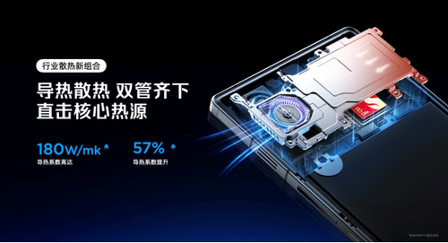 除了主动散热之外,红魔也带来了行业首款超厚冰阶VC,通过结构加厚与双面凸起设计,让蒸汽空间提升了40%,均热能力提升45%。同时也让VC均热板直触屏幕,散热效率提升了47%。