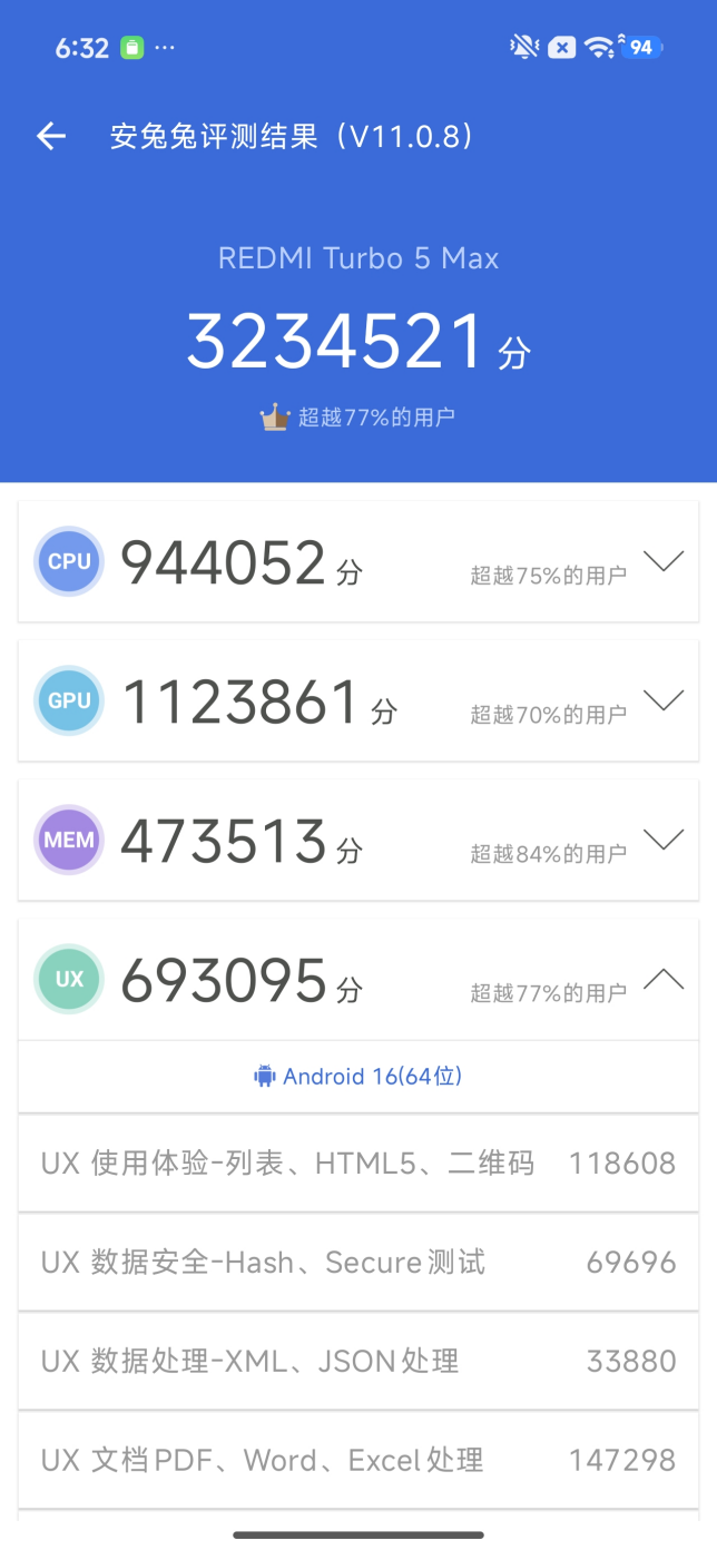 并且这次REDMI Turbo 5 Max还配备了LPDDR5X Ultra+UFS 4.1黄金组合,在性能释放方面,表现出色。