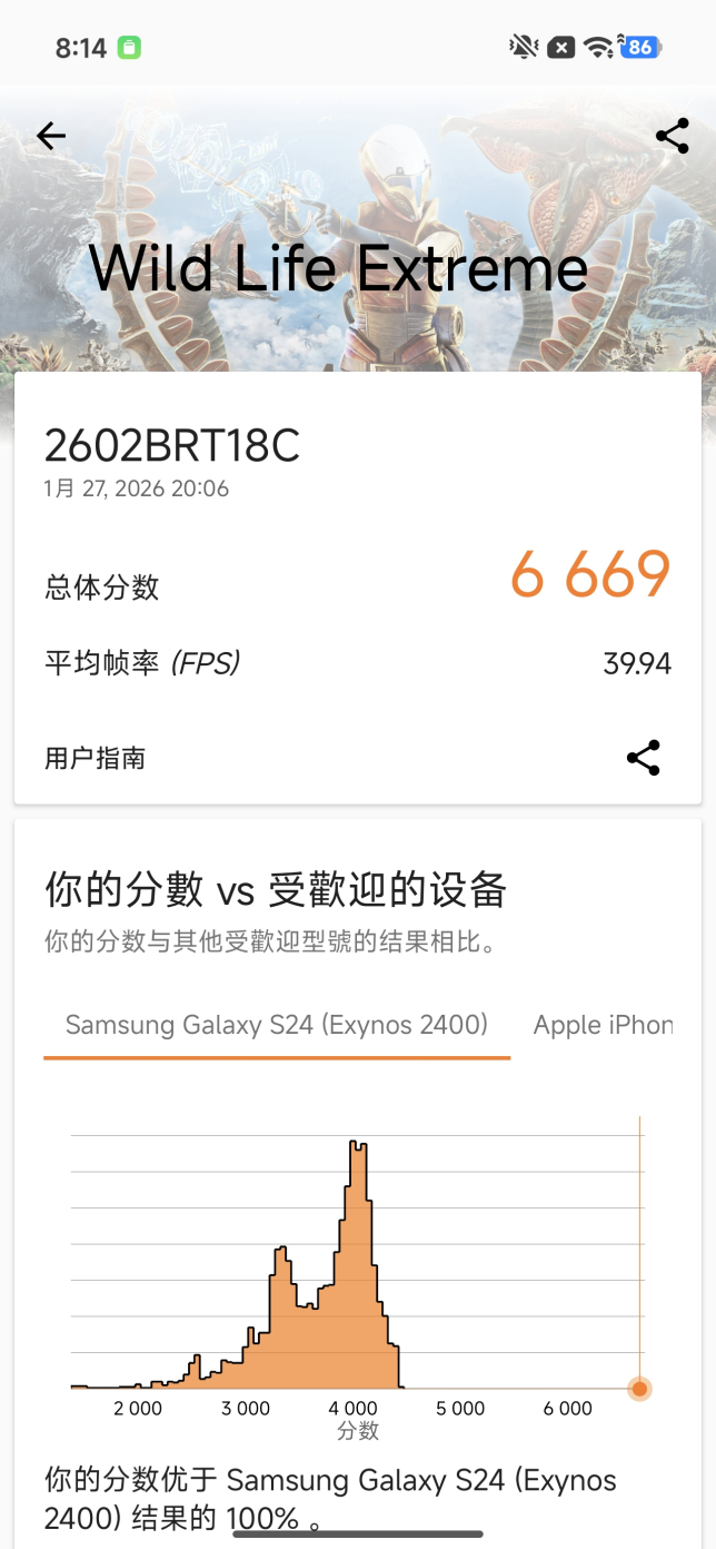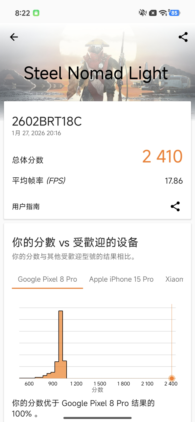 3DMARK的Steel Nomad Light跑分为2410,Wild Life Extreme跑分为6669。