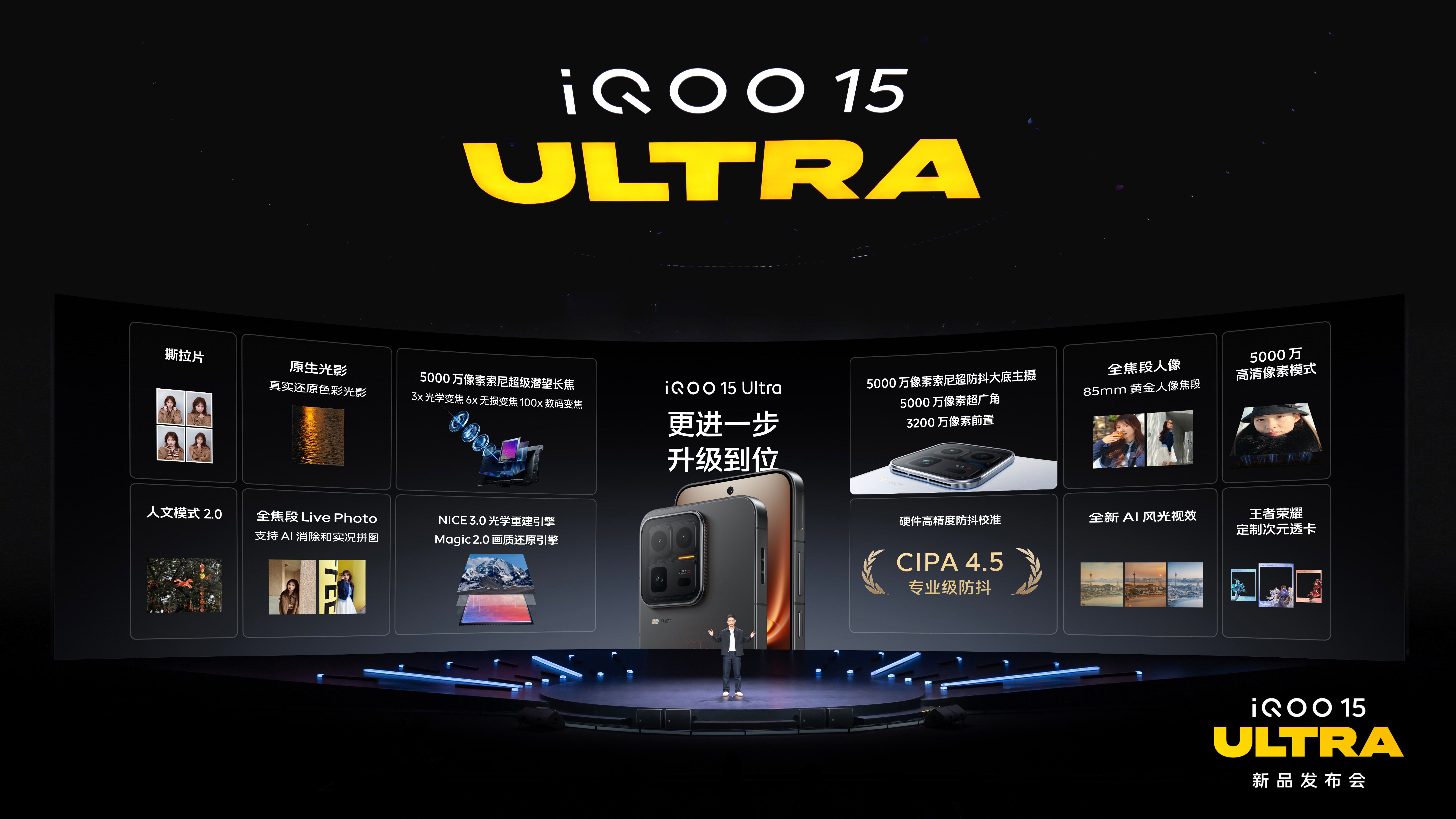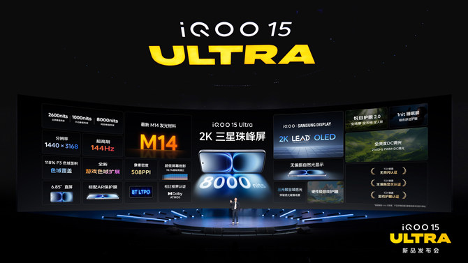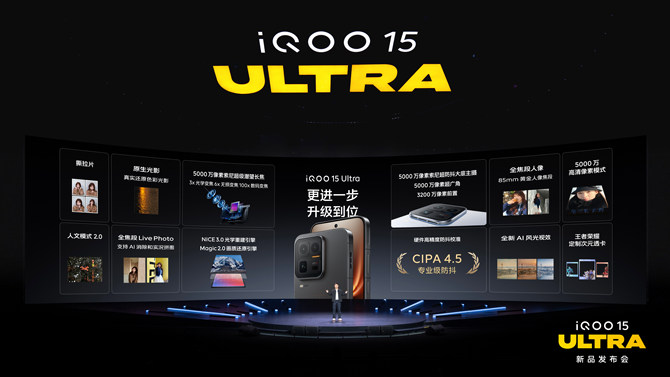 针对创作者与主播群体,iQOO 15 Ultra 支持七大头部游戏 144FPS 直播无限稳帧,可实现 2K 60FPS 30Mbps 高画质投屏,搭配专业高光回放、智能录制及一键开播模式,新手也能轻松上手,双 WLAN 加速保障直播稳定。发布会上,iQOO 官宣携手 Bilibili 及《王者荣耀》分别启动 “创作者激励计划” 与 “萤火创作者激励计划”,以 “技术 + 平台 + 激励” 助力创作者发展。