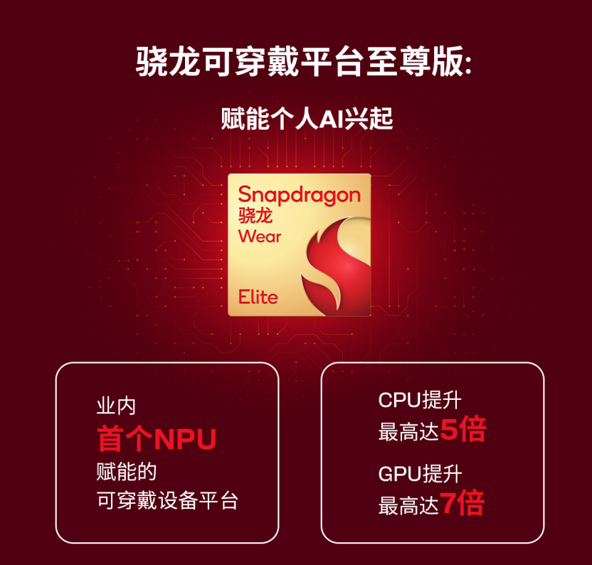 在性能层面,该平台单核CPU性能较前代提升5倍,GPU性能提升7倍,为多任务处理、流畅渲染提供了强大支撑;在能效层面,其日常使用时间延长30%,支持多日续航,10分钟快速充电即可充至50%,解决了智能可穿戴设备的续航痛点。在连接能力上,骁龙可穿戴平台至尊版打造了首创的六重连接架构,集成5G RedCap、超低功耗Wi-Fi、蓝牙6.0、UWB、GNSS和NB-NTN六大技术,实现了全场景、无死角的智能连接。