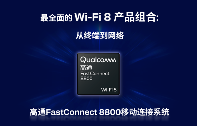 在无线连接层面,高通推出AI原生Wi-Fi 8产品组合,包括FastConnect 8800移动连接系统和五款高通跃龙网络基础设施平台,打通了终端与网络侧的连接能力,为AI时代的物理AI和工业AI提供了高性能、高可靠的连接支撑。FastConnect 8800是全球首款支持4x4射频配置的移动Wi-Fi 8解决方案,峰值速率突破10Gbps,千兆覆盖范围较前代提升3倍,同时支持蓝牙7.0、超宽带802.15.4ab等多种连接技术,具备厘米级精度的近距离感知AI能力,可广泛应用于智能手机、平板、机器人等终端。