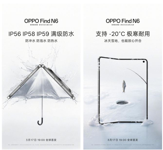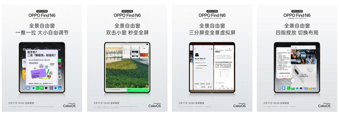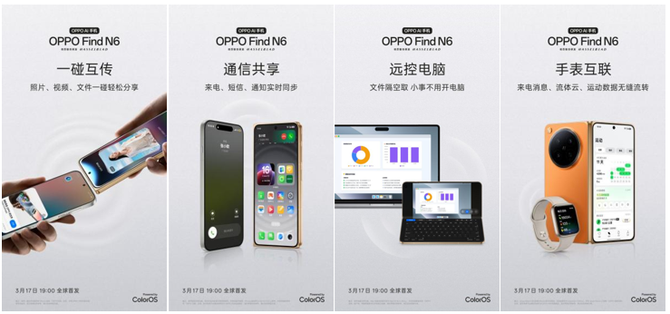 从无感折痕的形态突破,到生产力AI外挂的体验升级,再到满级防水、专业护眼的全面加持,OPPO Find N6 以无短板的旗舰实力,让折叠屏真正成为兼具极致体验、高效生产力与长久耐用性的日常主力机。当折叠大屏的想象力不再被折痕束缚,当 AI 赋能让创意与效率随心而至, OPPO Find N6 正以标杆之力,开启折叠屏的全新世代。 Find N6 将于3 月 17 日 19:00 全球首发,更多产品细节,敬请持续关注 OPPO 官方信息。