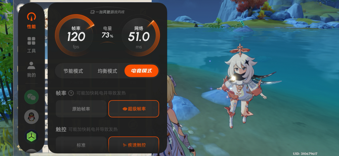 理论参数再好看,不如实际体验来得真实。我们针对一加15T进行了多项游戏实测。在《原神》30分钟跑图测试中,开启插帧之后,极限画质+120帧模式下,平均帧率达到120.3帧,功耗仅为5.1W,机身最高温度控制在45℃左右。这一表现甚至超越了部分大屏性能旗舰,充分证明了骁龙8至尊版在小屏机身中的优秀调度能力。