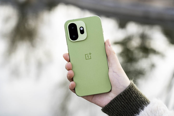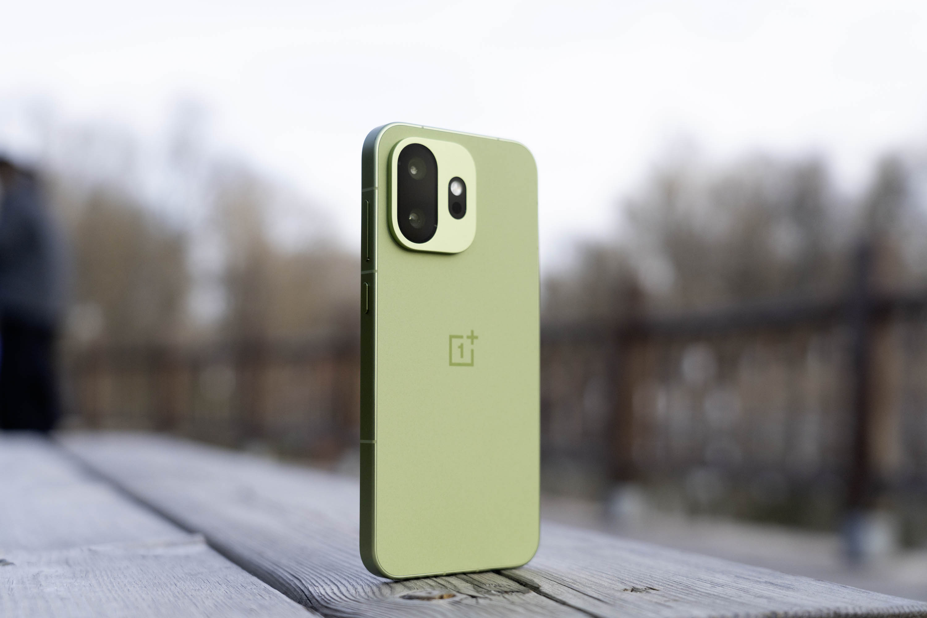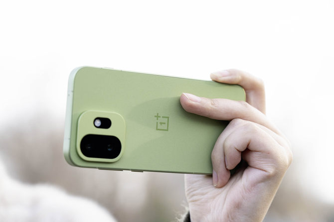 本次评测的「松弛抹茶」配色无疑是一加15T最具辨识度的版本。这种低饱和度的抹茶绿色调灵感源自春日新芽,既不张扬又极具质感,完美契合当下年轻用户追求的「治愈系」审美。与市面上常见的渐变配色或高饱和度撞色不同,松弛抹茶呈现出一种温润如玉的质感,在不同光线下会呈现出微妙的光影变化,时而偏向清新的草绿,时而又透露出一点点奶油般的柔和。