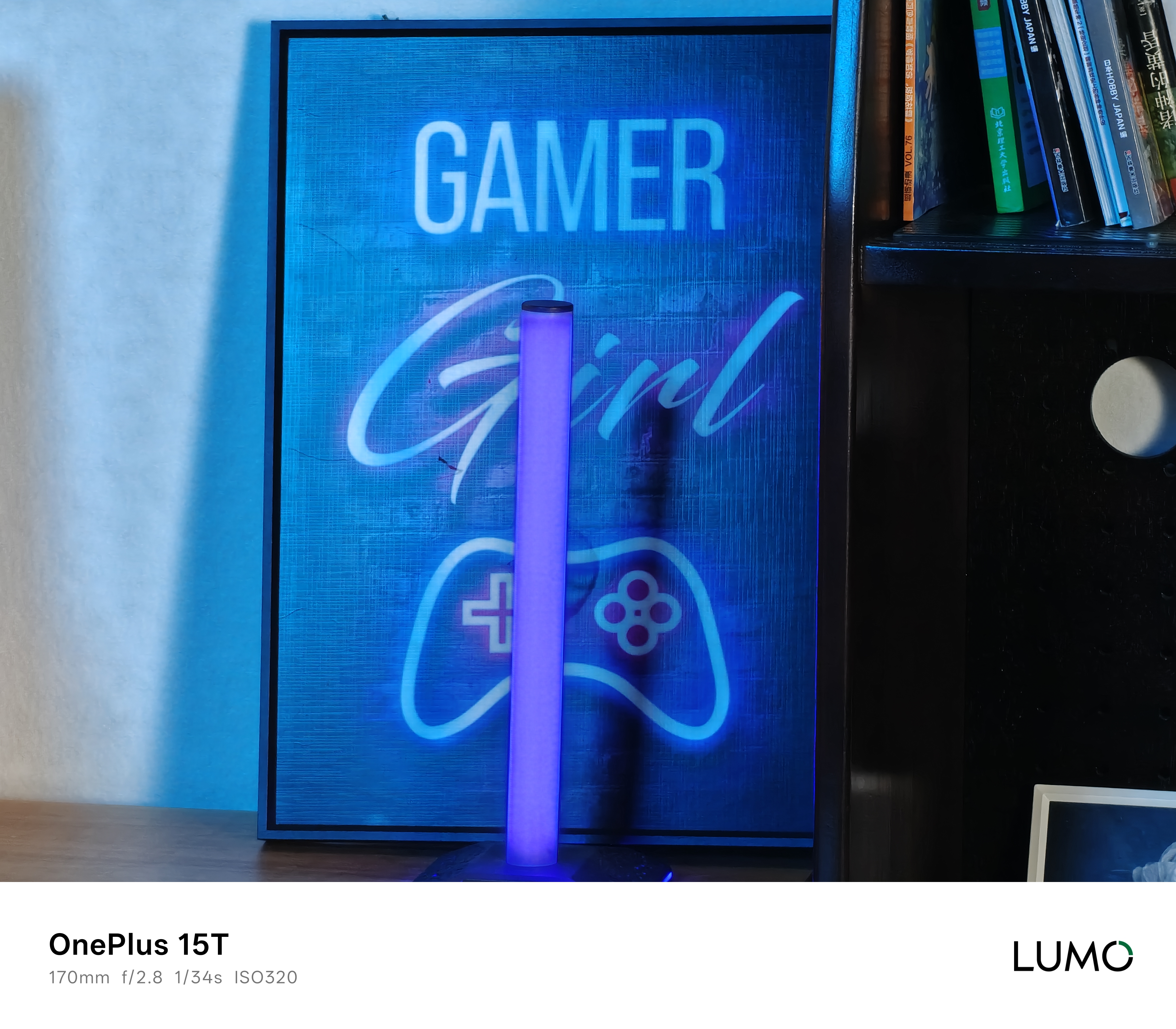 影像系统一直是一加旗舰的传统强项,而一加15T搭载的LUMO凝光影像系统更是将小屏手机的影像能力推向了新高度。后置双摄组合包括一颗5000万像素主摄(1/1.56英寸传感器,支持OIS光学防抖)和一颗5000万像素潜望式长焦镜头(85mm焦段,3.5倍光学变焦,支持OIS)。前置则为1600万像素自拍镜头。这套影像系统的核心亮点在于那颗潜望长焦,等效85mm焦段正好覆盖了经典的人像黄金焦段。