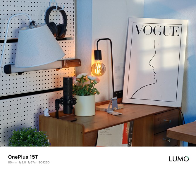 在实际拍摄体验中,一加15T展现出了令人满意的表现。主摄在白天光线充足的场景下,成片色彩准确、细节丰富,动态范围表现出色,高光压制和暗部细节还原都达到了旗舰水准。LUMO凝光影像系统带来的算法加持让照片呈现出更加自然的光影过渡,不会出现过度锐化或色彩溢出的问题。夜景拍摄同样可圈可点,得益于大底传感器和OIS防抖的配合,即使在弱光环境下也能拍出清晰纯净的照片。